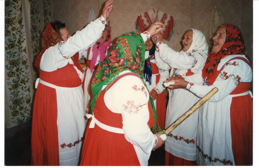 Едва ли не главным годовым праздником в селе Петрищево Духовщинского района, как почти всюду в Смоленской области, был день Святого Духа, который в западнорусском народном календаре приходится на восьмое воскресенье по Пасхе[1]. Поэтому совершаемые в это время календарные обряды, как и сопровождающие их песни, получили название дýховских. Сложная структура, развитость обрядовых практик и мифологических представлений, богатство задействованных песенных форм — все эти качества придают особую весомость ритуалу, отмечающему в смоленском народном календаре границу весны и лета. Духовская традиция села Петрищево, большинство компонентов которой сохранялись в живом бытовании вплоть до 1990 г., отличается, с одной стороны, наличием «классических» элементов русской троицкой обрядности, с другой — присутствием архаических и редких обрядовых элементов.