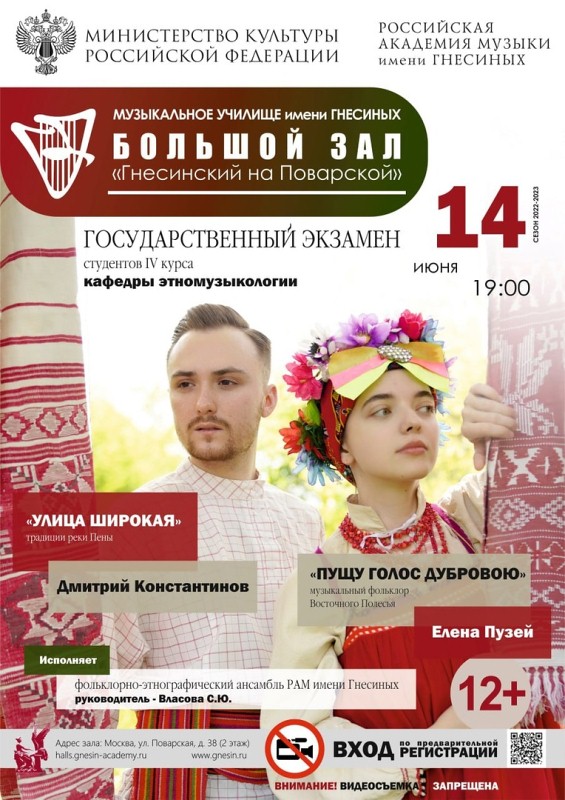В программе будет представлена локальная традиция южной части русско-белорусского пограничья – Новозыбковского района Брянской области, Ветковского и Добрушского районов Гомельской области. Традиционная культура Восточного Полесья представляет собой целостный архаичный пласт фольклора восточных славян, сохранившийся в соседстве русских и белорусов, несмотря на многочисленные возникавшие административные и государственные границы. Огромное разнообразие обрядовых жанров и приуроченных песен календарного цикла позволяет считать этот регион своеобразным заповедником древней музыки.
