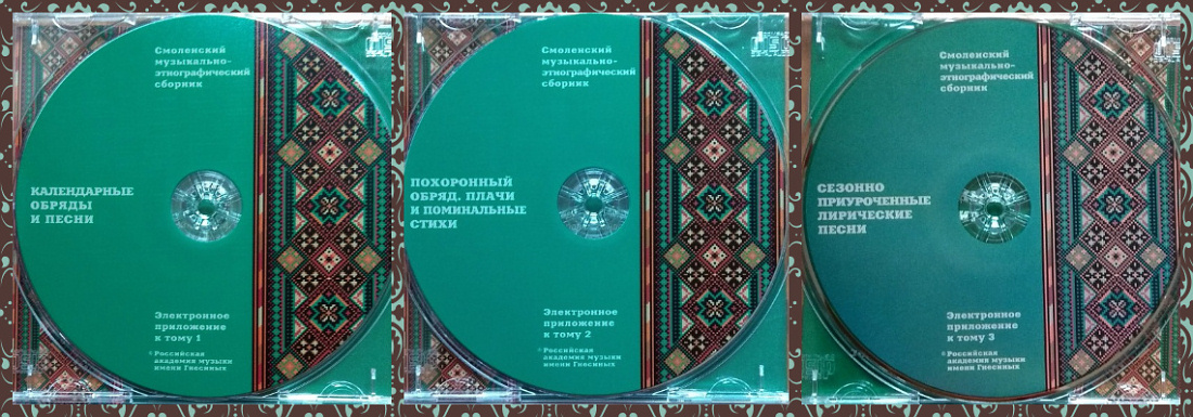 С радостью, с сердечной благодарностью жителям смоленских деревень и сел — представителям уникальной музыкальной культуры едем с презентацией новых изданий – три DVD-диска к I, II и III томам «Смоленского музыкально-этнографического сборника», которые включают в себя электронные версии первых двух томов («Календарные обряды и песни» и «Похоронный обряд, плачи и поминальные стихи») и звуковое приложение — сотни образцов смоленского музыкального фольклора, записанного участниками гнесинских экспедиций с 1960-х годов по настоящее время.