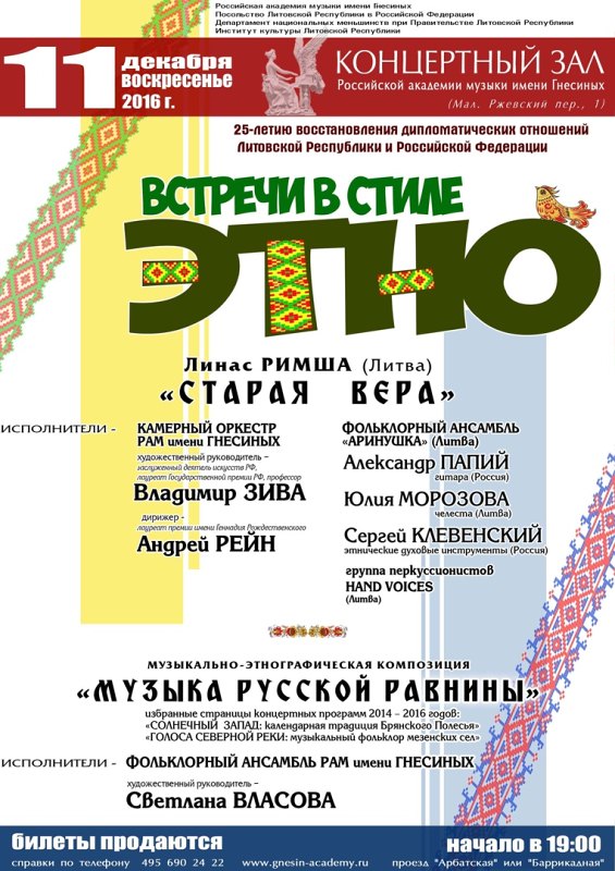 В первом отделении «Встреч в стиле ЭТНО» прозвучит его сочинение в стиле world music — «Старая вера» (Old Faith), основанное на песнях русских старообрядцев Литвы.