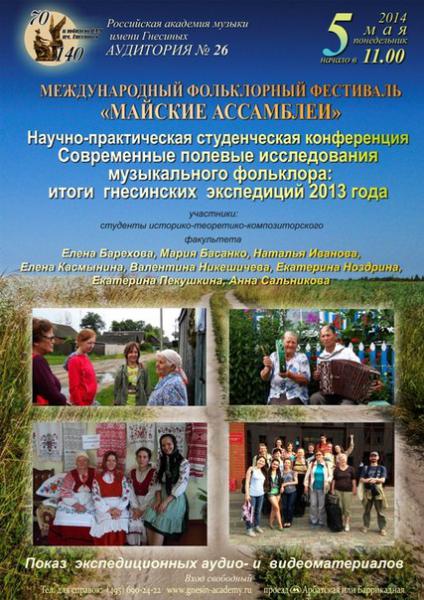 Ежегодная научно-практическая студенческая конференция по материалам экспедиций «Сохранение и фиксация музыкального фольклора: итоги гнесинских экспедиций 2013 года» 5 мая 2014 РАМ имени Гнесиных аудитория 26 11:00 П Р О Г Р А М М...