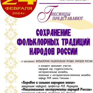Фольклорно-этнографический ансамбль РАМ имени Гнесиных проведет творческие мастер-классы в московских школах искусств В рамках Федерального проекта «Поддержка творческих проектов в сфере казачьей культуры» фольклорно-этнографический ансамбль Российской академии музыки имени Гнесиных проведет мастер-классы в московских...