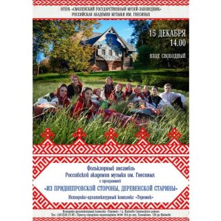 15 декабря 2019 г. Смоленск Историко-архитектурный комплекс «Теремок» Смоленского музея-заповедника 14.00 В рамках презентации коллективом Музыкально-этнографического центра имени Е.В. Гиппиуса Российской академии музыки имени Гнесиных новых изданий – три DVD-диска к I, II и...