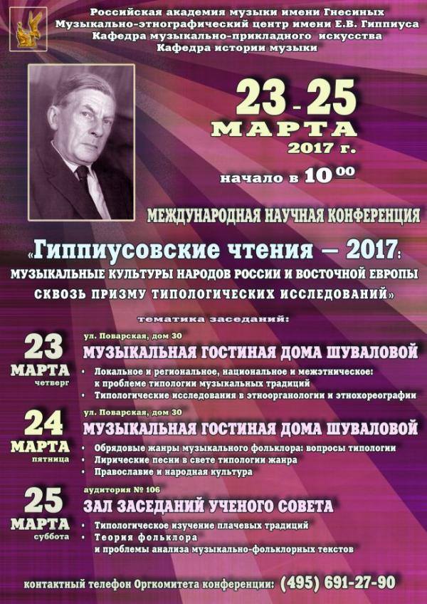 23–25 марта 2017 Гостиная Дома Шуваловой РАМ им. Гнесиных начало в 10.00 регистрация участников в ...